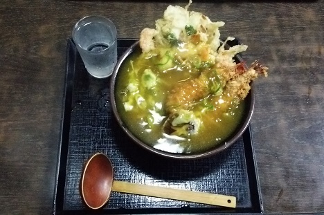 海老カレーうどんにかき揚げトッピングです